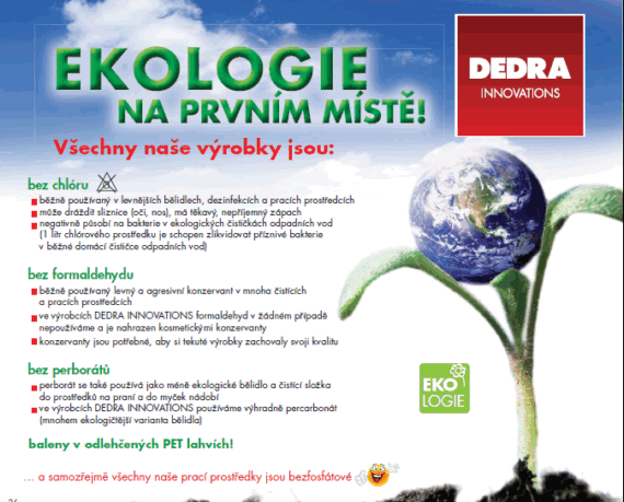 - ve výrobcích Dedra Innovations používáme výhradně percarbonát (mnohem ekologičtější varianta bělidla